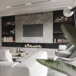 Kamin je električni, I dominira u prostoru, stvara posebnu dimenziju u vizuelnom utisku dnevnog boravka. Skladno je povezan sa centralnim zidom.